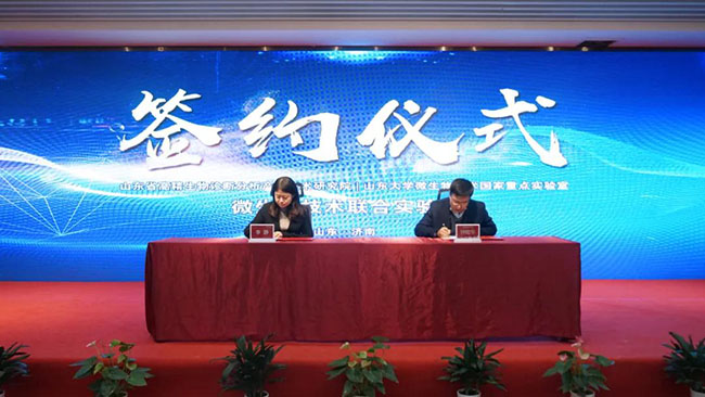 12月19日下午,山東省高精生物診斷分析產業技術研究院有限公司與山東大學共建“微生物技術聯合實驗室”簽約暨揭牌儀式圓滿舉行。山東大學科學技術研究院副院長李勇、科學技術研究院科技合作與技術轉化中心主任王立民、微生物技術國家重點實驗室副院長王祿山,歷城區科學技術局局長陳學柱,唐冶街道黨工委副書記、辦事處主任付常勇,山東省生物診斷分析產業創新創業共同體理事長甘宜梧等一行領導出席本次活動。